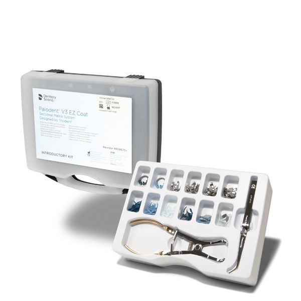 CONTENIDO: 100 matrices + 75 cuñas + 30 cuñas con pantalla de protección + 1 anillo universal + 1 anillo estrecho + 1 fórceps + 1 pinzas pin.